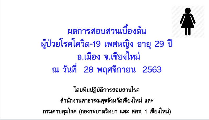 | 치앙마이 코로나, COVID-19 감염된 여성 발견 (0) | 2020.11.28 |