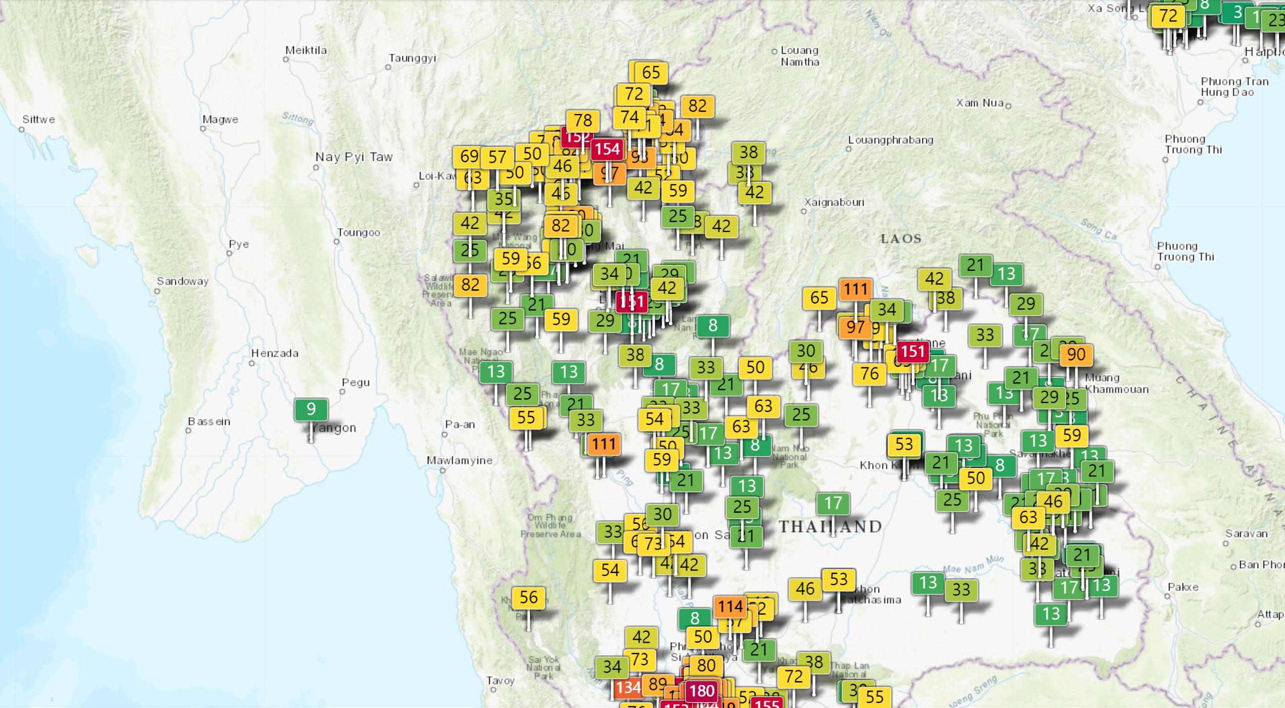 태국 북부(북위 20도)는 산불의 영향이 없더라도
