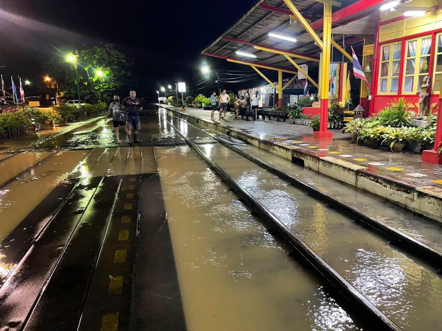 Travellers stranded after flood submerges highway and railway in Chumphon province