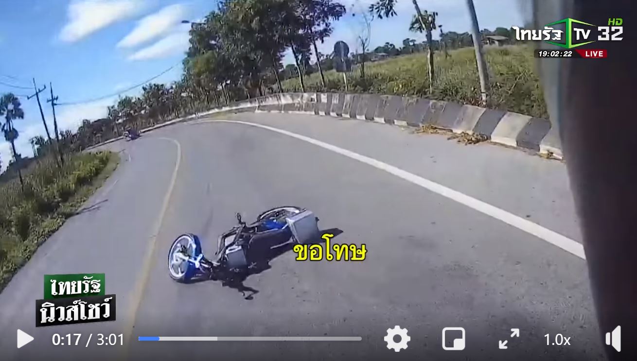 결국 정상 주행하던 바이크(액션캠 있음)가 피하려다가 넘어진다