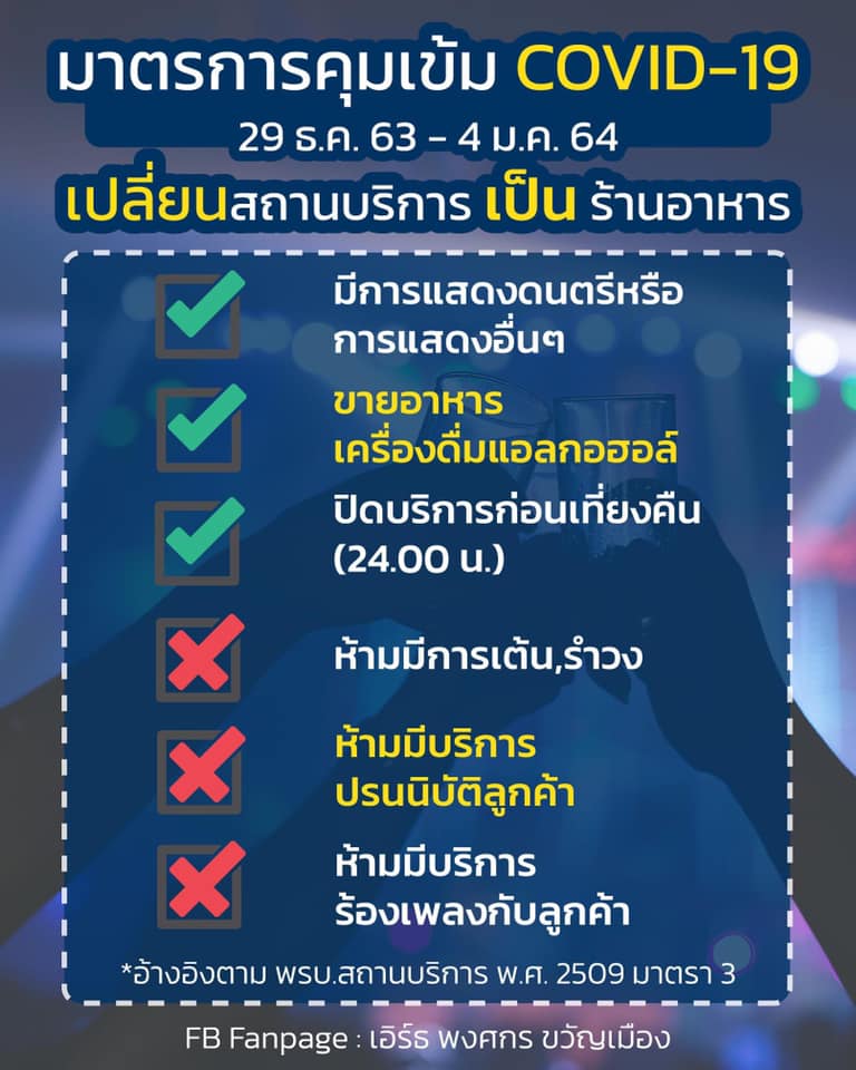 As a new wave of Covid infections bites, the Bangkok Metropolitan Administration (BMA) has ordered the closure of all entertainment venues from Tuesday until Jan 4.