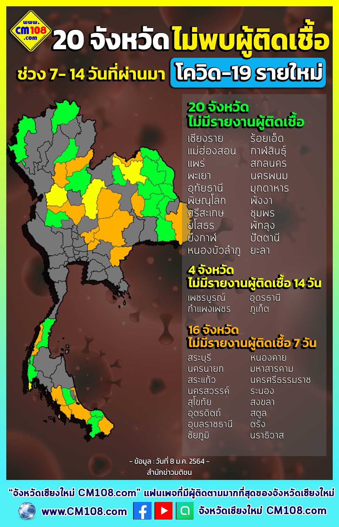 เปิด 20 จังหวัด ยังเหนียว ไม่มีผู้ติดเชื้อโควิ