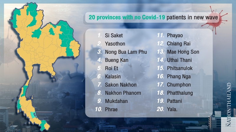 The Centre for Covid-19 Situation Administration (CCSA) said on Friday that 20 provinces were still free of Covid-19 patients in the new wave of infections.