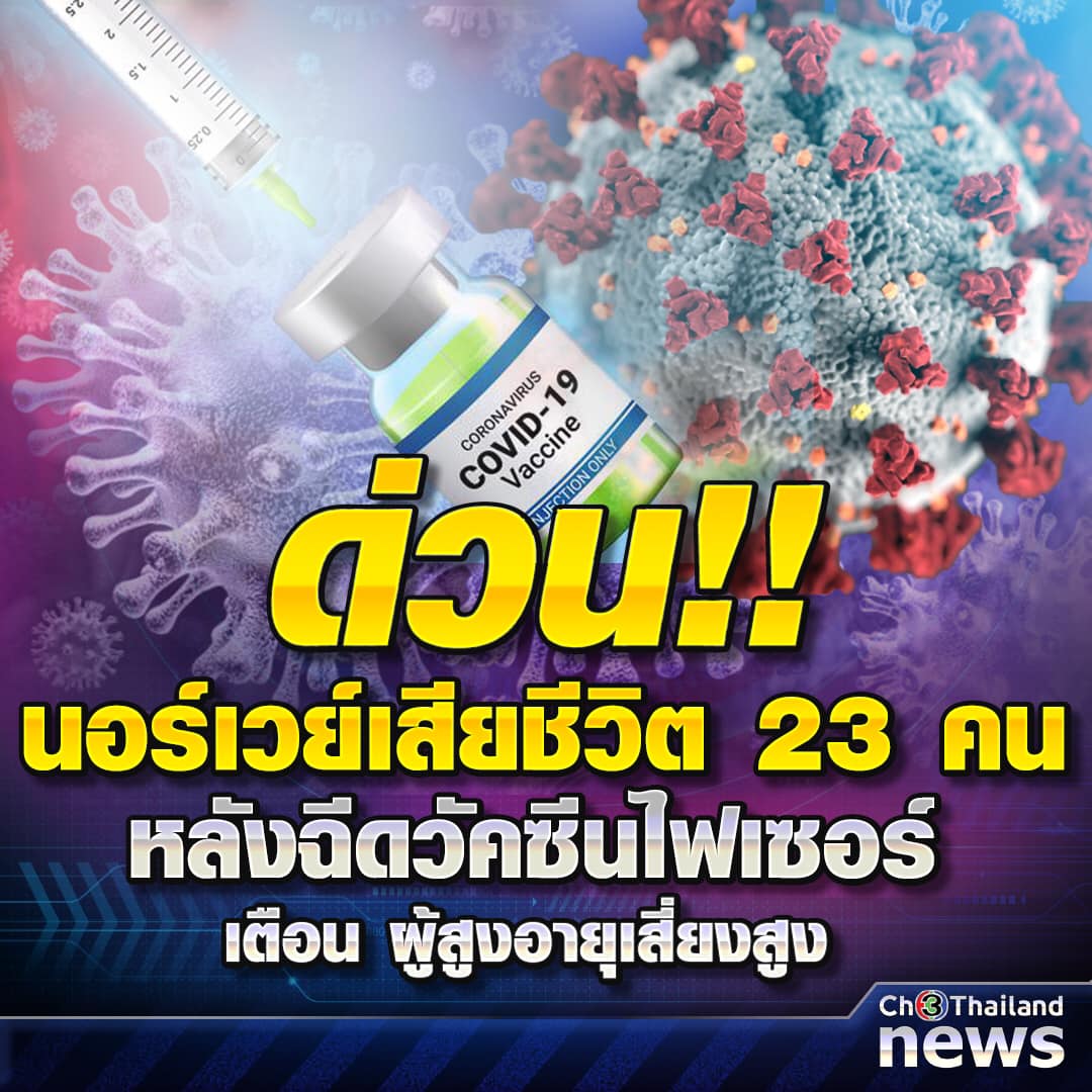 มีรายงานว่าชาวนอร์เวย์เสียชีวิต 23 คน หลังการฉีดวัคซีนป้องกันโควิดของไฟเซอร์ฯ
