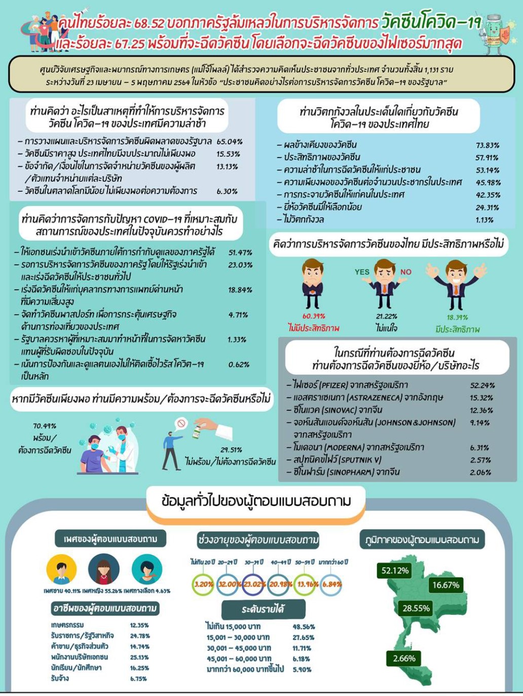 แม่โจ้โพลล์ เผยคนไทยส่วนมากบอกภาครัฐบริหารจัดการวัคซีนโควิด-19 ล่าช้า อยากฉีดวัคซีนโควิดข